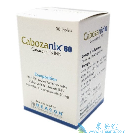 卡博替尼剂量:1.不能用卡博替尼胶囊替代卡博替尼片。卡博替尼推荐的每天剂量是60mg,不要与食物给予卡博替尼。指导患者服用卡博替尼前和至少1小时后共至少2小时不要进食。继续治疗直至患者再也不经历临床获益或经受不可接受毒性,整吞卡博替尼片。不要压碎卡博替尼片。下一剂量12小时内不要服用缺失剂量。