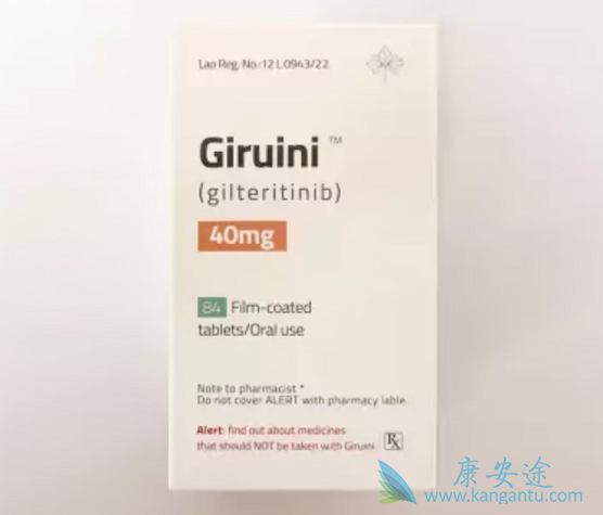 吉瑞替尼,药品英文名:Gilteritinib,日本安斯泰来制药研发生产,2021年1月31日在中国获批上市,用于治疗 FLT3 突变阳性复发或难治性急性髓性白血病 (AML)。