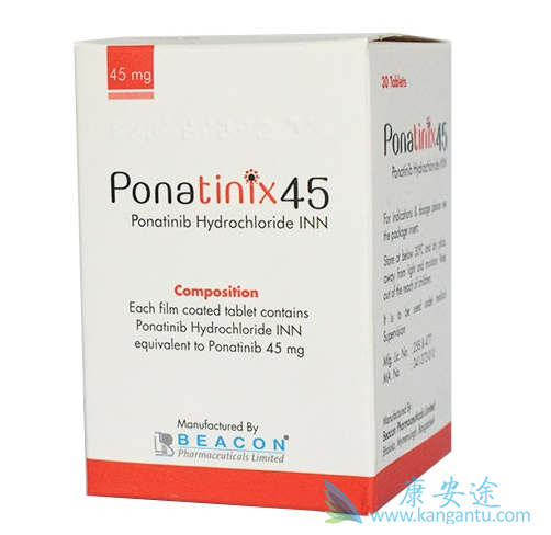 普纳替尼(又叫帕纳替尼)是第三代BCR-ABL酪氨酸激酶抑制剂(TKIs)。2012年12月14日,普纳替尼被美国FDA 特许经过快速审批上市销售,用于ABL T315I突变的慢性粒细胞白血病(CML)或费城染色体阳性(Ph+)的急性淋巴细胞白血病(ALL)的治疗,也可用于对以往酪氨酸激酶抑制剂 (TKI)耐药或不耐受的CML 或ALL的治疗。