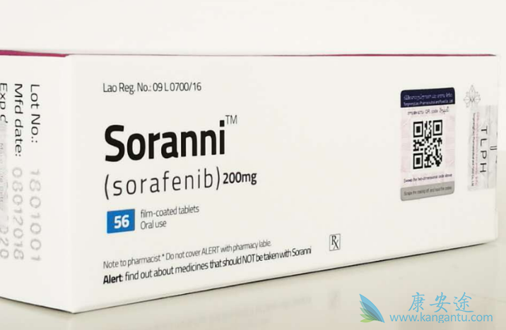 索拉非尼/索拉菲尼是一种口服多靶点受体酪氨酸激酶抑制剂,能阻断肿瘤细胞增殖、抑制血管生成,而且还能诱导肿瘤细胞凋亡,具有良好的抗肿瘤活性,主要用于晚期肾细胞癌的治疗。也是目前第一个在肝癌治疗上获得良好疗效的分子靶向药物。